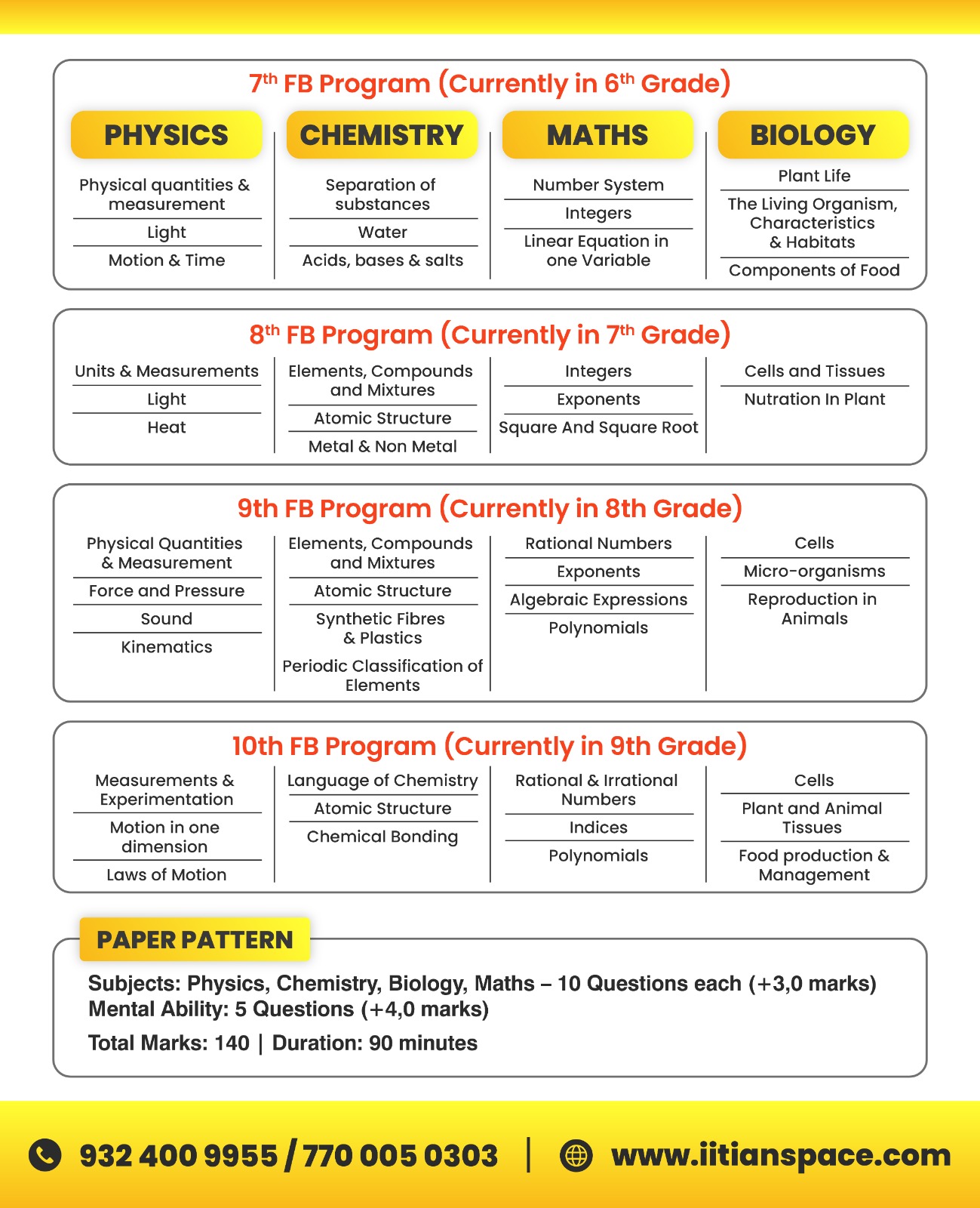 For students of class 8th, 9th, 10th : One Year Classroom Program to prepare the students for competitive exams like NTSE & Olympiad, SAT along with School Exams.
